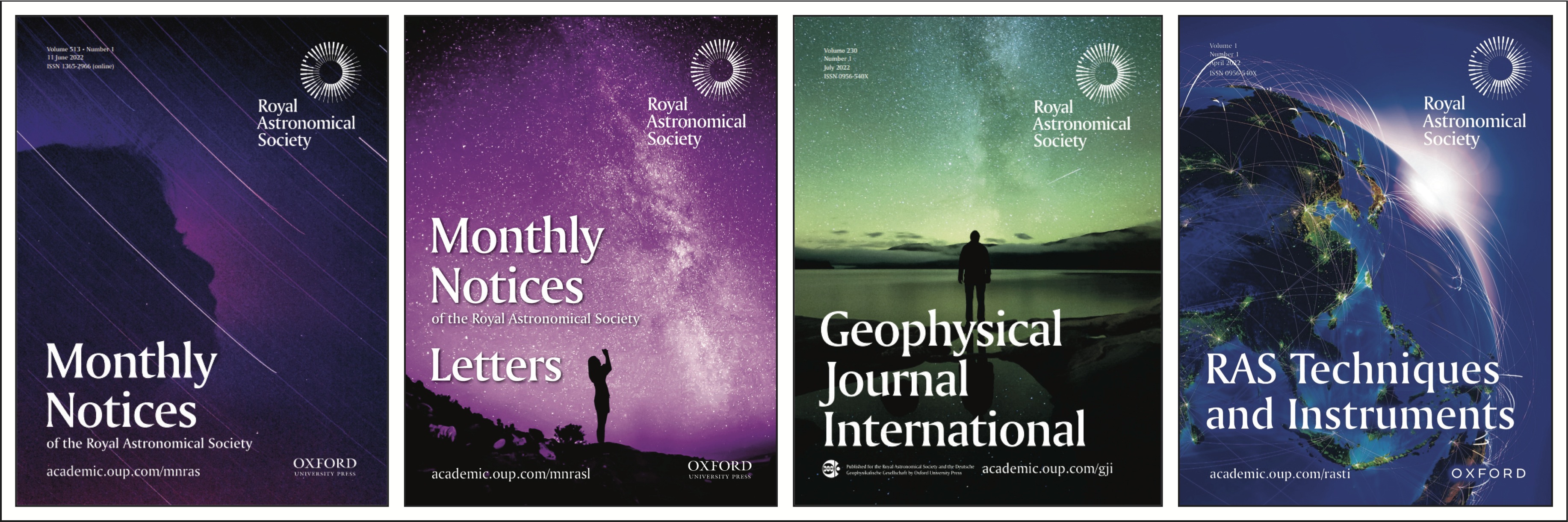 The RAS publishes results of original research in its major journals, Geophysical Journal International (GJI), Monthly Notices of the Royal Astronomical Society (MNRAS) and RAS Techniques and Instruments (RASTI). Astronomy & Geophysics (A&G) is the Society's full-colour news and reviews magazine, distributed to all Fellows.