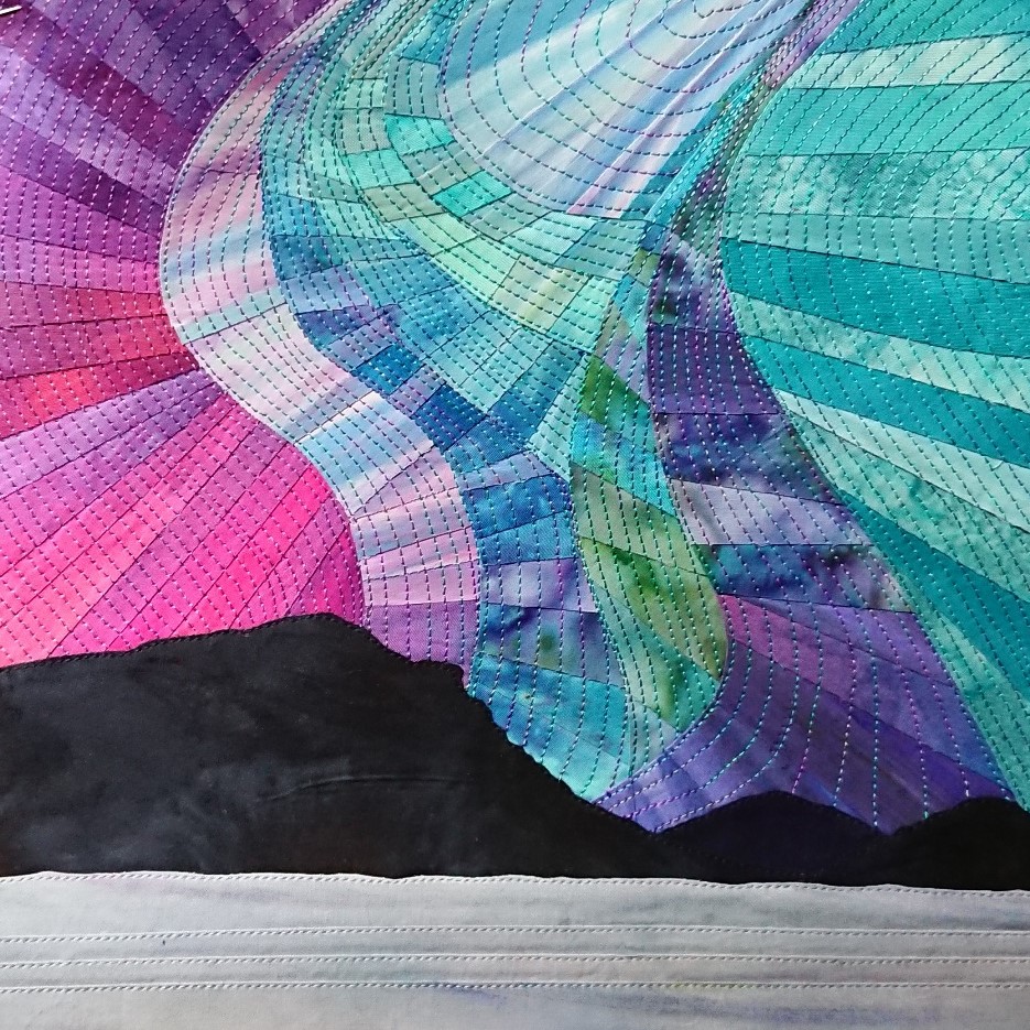 Techniques used: "The square is made of hand painted cotton fabric, bonded and machine stitched."