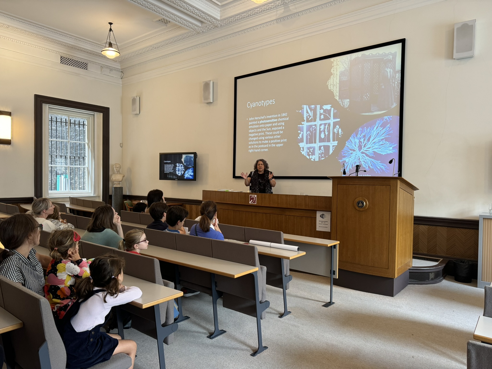 This gave them a chance to see the architectural features of the building, learn about the history of astronomy and the RAS, and enjoy a special display of books, manuscripts and artefacts in the Society’s double-height, galleried library.