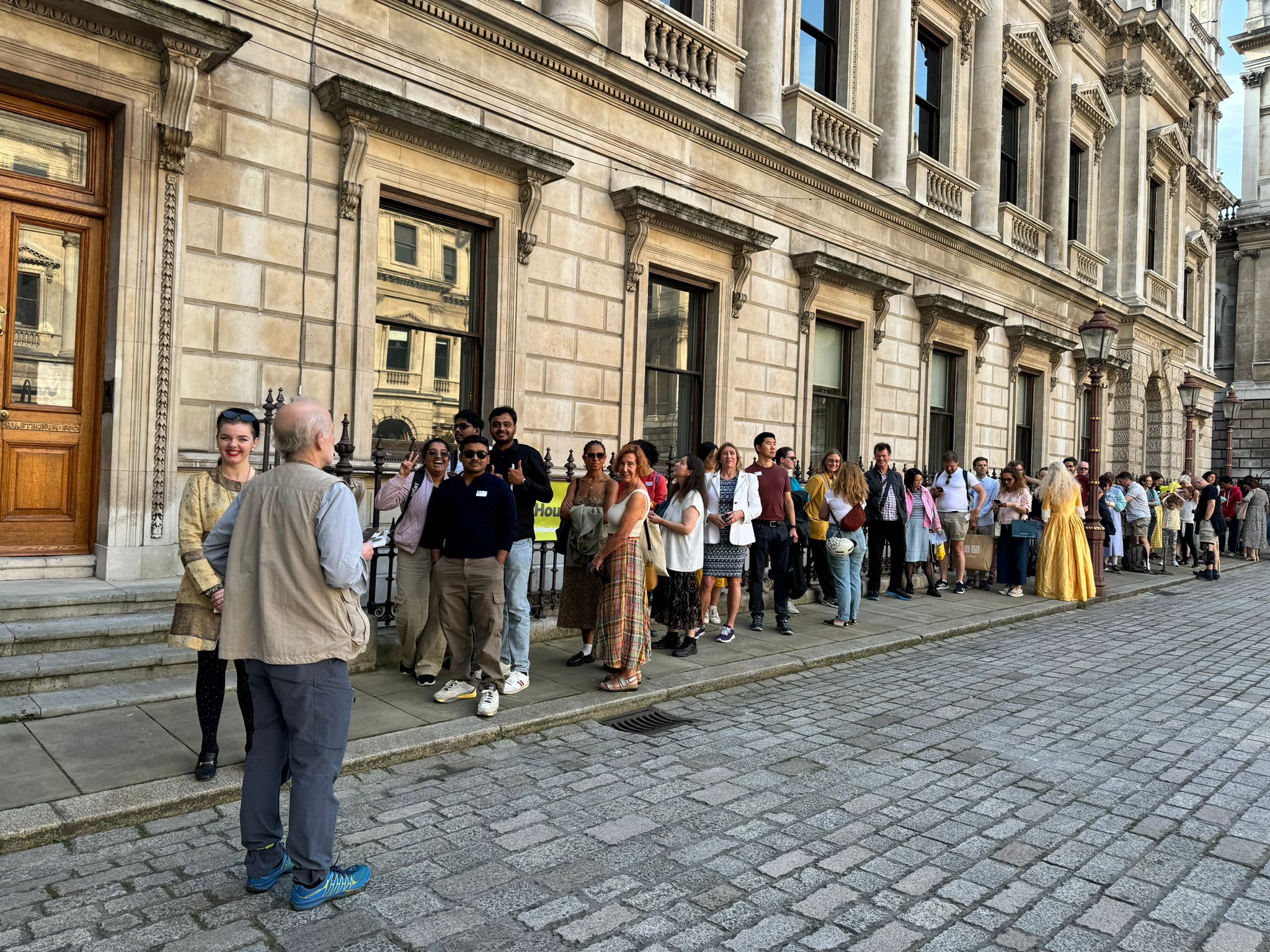 Dozens of people queued outside the RAS waiting for the Open House event to begin at 10:00 BST on Saturday 21st September, with the line going all the way back to the offices of the Society of Antiquaries of London.