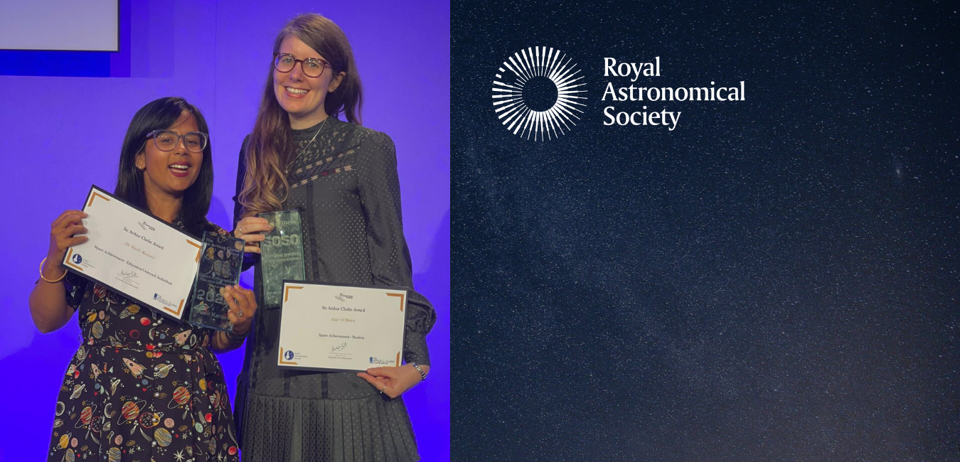 RAS President Professor Emma Bunce says "Many congratulations to our team members Sheila and Aine on their Sir Arthur Clarke Awards. It is always a great pleasure to see our own team recognised within the space industry, and for such excellent work in outreach and engagement. Well done!”