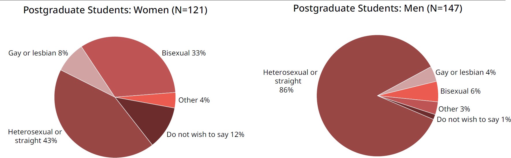 Caption: Sexual orientations of postgraduate student questionnaire respondents by gender, 2023.