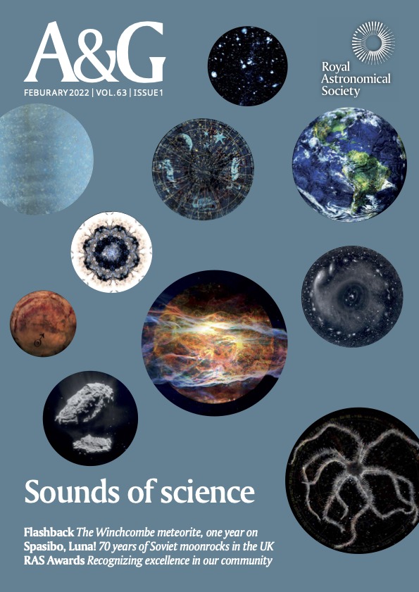 The February issue of A&G has now been published online. The cover is inspired by Celestial Incantations, a new album from an arts and science collaboration. You can also read about the search for the Winchcombe meteorite and the new RAS journal, RASTI. Other articles look at the 50 year history of Luna samples in the UK, a network for space academics, a meeting on SW-I-M-T couplings, our thought-provoking Timeline and lots more.