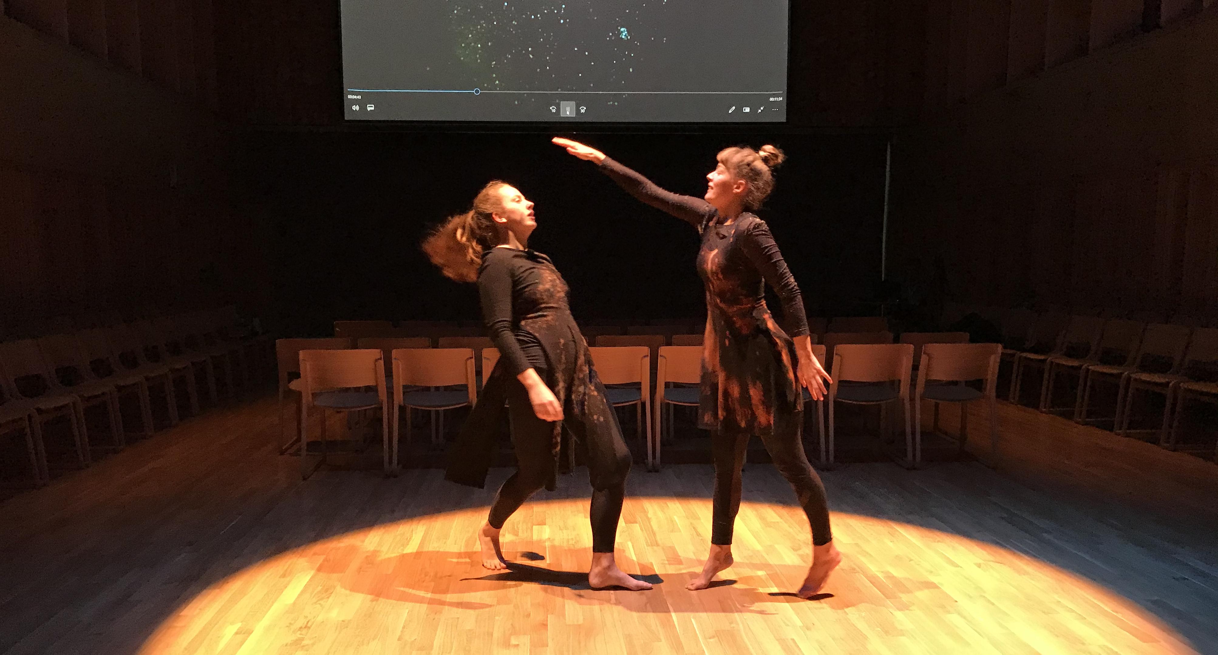 The talks were followed by an experimental and interactive performance in which professional dancers Becky Byers and Felix Denton explored the soundscapes through contemporary dance. They danced amongst the audience as they responded to the sound-led, data-driven journey from Antarctica to beyond the galaxy.